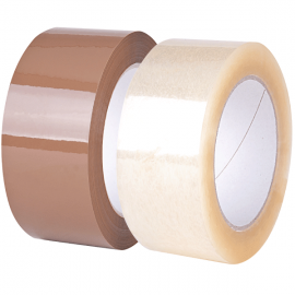 Nastro adesivo per imballaggi possibilità di averlo trasparente o color avana in confezioni da sei rotoli, ogni rotoli è di 60 mt per 50mm.