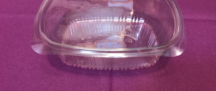 Vaschette trasparenti con coperchio incorporato.