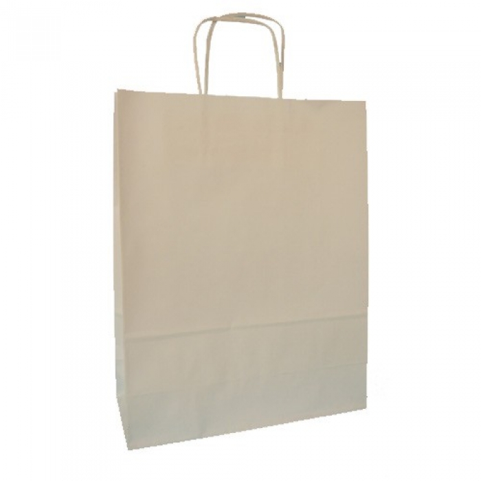 Borsette colore CREMA su Kraft Bianco con maniglia carta ritorta colorata