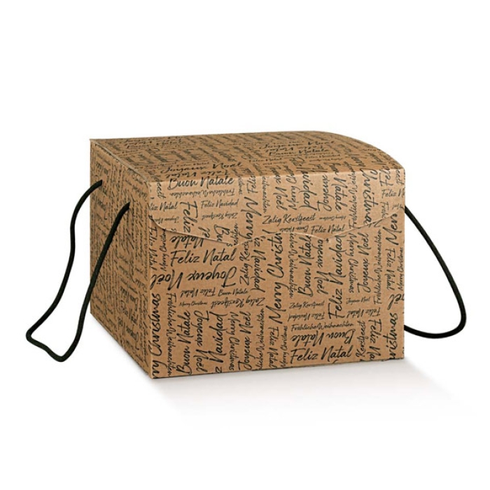 Scatola in cartone accoppiato per confezionare prodotti enogastronomici vari, oggetti, abbigliamento, archivio. Fornita con 2 pezzi di cartone da utilizzare come rinforzo per il fondo della scatola. Viene fornita con 2 cordini in cotone di 65cm., dotati di capocorda, per un inserimento automatico nei 4 fori predisposti nella scatola