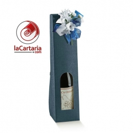 Scatola Juta Blu da 1 bottiglia verticale con finestra