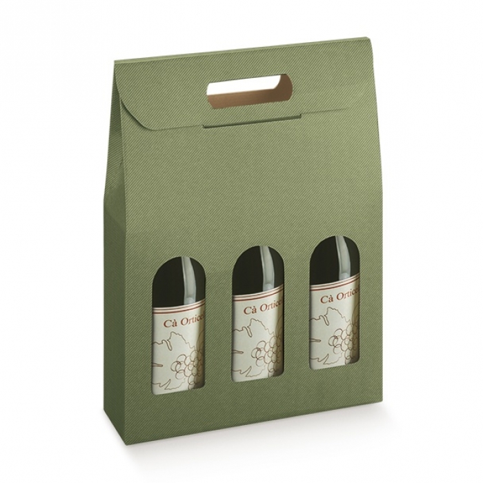 Scatola Tortora da 3 bottiglie verticale con finestra