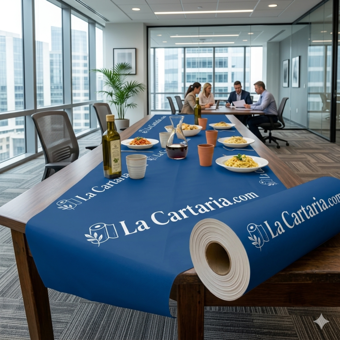 Tovaglie a rotolo fondo bianco mt 25 x 1.20 personalizzate