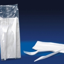 - Trasparente Forchetta + coltello + tovagliolo 2 bianco veli 38x38