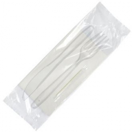 - Forchetta + coltello + tovagliolo 2 bianco veli 38x38