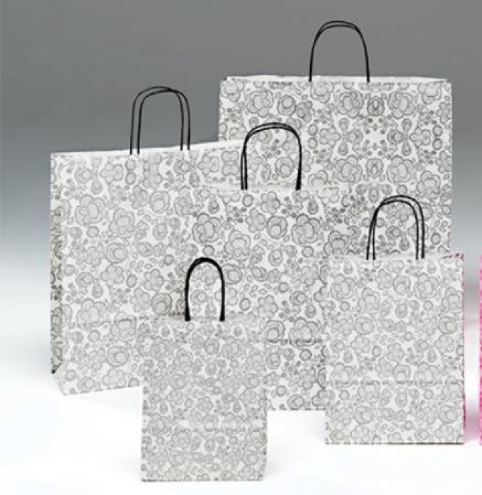 Borsette "BLUMEN" su Kraft Bianco con maniglia carta ritorta bianca