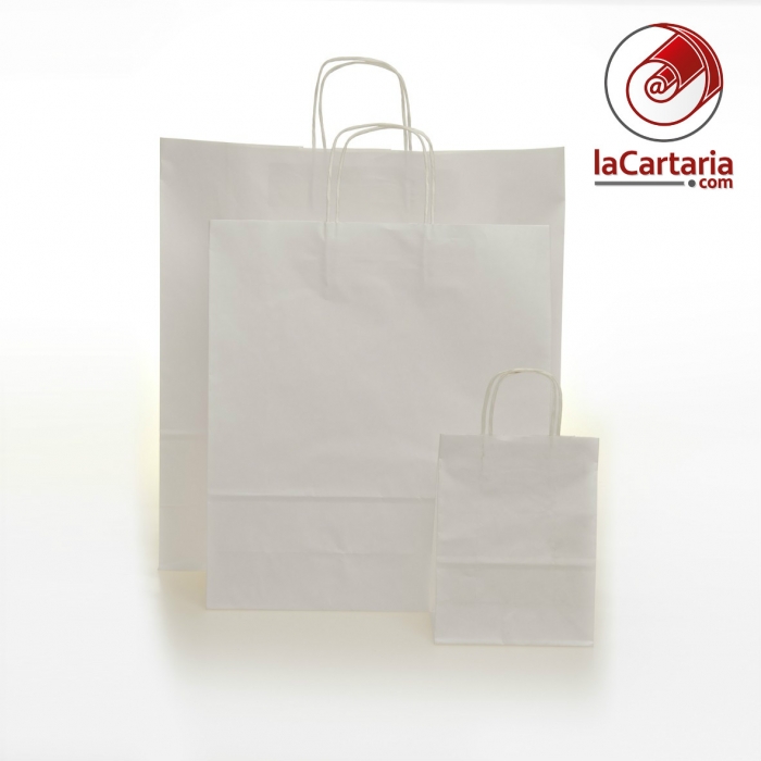 Le nostre buste di carta sono ottime per il riciclo, possono essere personalizzate con il logo e/o con scritte tipo motto aziendale, in questo caso sono di colore bianca, su carta Kraft Bianca, maniglia in cotone con bordo superiore risvoltato per maggiore rinforzo. Il prezzo è inteso a cartone i tempi di consegna sono intorno ai 10 giorni lavorativi. La carta Kraft è sinonimo di “forza” caratterizzata da una notevole resistenza allo strappo e alla trazione ottima per l’imballaggio di materiali che devono essere protetti dall’umidità, che aspetti? Personalizza le tue buste.