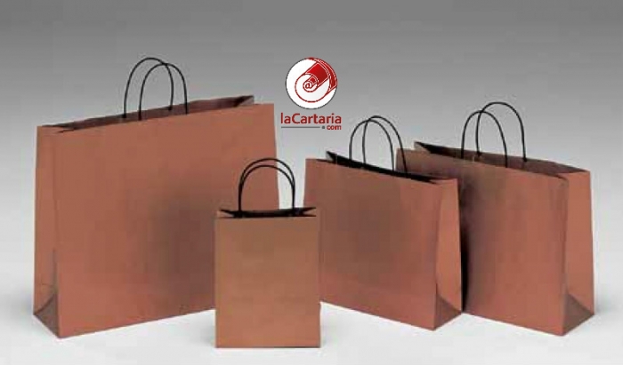 Le nostre buste di carta sono ottime per il riciclo, possono essere personalizzate con il logo e/o con scritte tipo motto aziendale, in questo caso sono di colore caffè, su carta Kraft Bianca, maniglia di cotone colorata, il prezzo è inteso a cartone i tempi di consegna sono intorno ai 10 giorni lavorativi. La carta Kraft è sinonimo di “forza” caratterizzata da una notevole resistenza allo strappo e alla trazione ottima per l’imballaggio di materiali che devono essere protetti dall’umidità, che aspetti? Personalizza le tue buste.