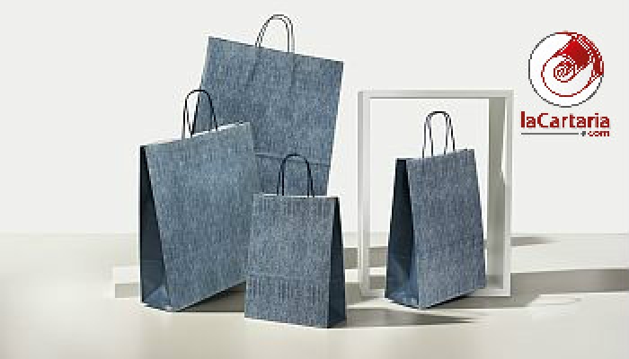 Le nostre buste di carta sono ottime per il riciclo, possono essere personalizzate con il logo e/o con scritte tipo motto aziendale, in questo caso sono di colore jeans a fantasia, su carta Kraft Bianca, maniglia di carta ritorta colorata, il prezzo è inteso a cartone i tempi di consegna sono intorno ai 10 giorni lavorativi. La carta Kraft è sinonimo di “forza” caratterizzata da una notevole resistenza allo strappo e alla trazione ottima per l’imballaggio di materiali che devono essere protetti dall’umidità, che aspetti? Personalizza le tue buste.
